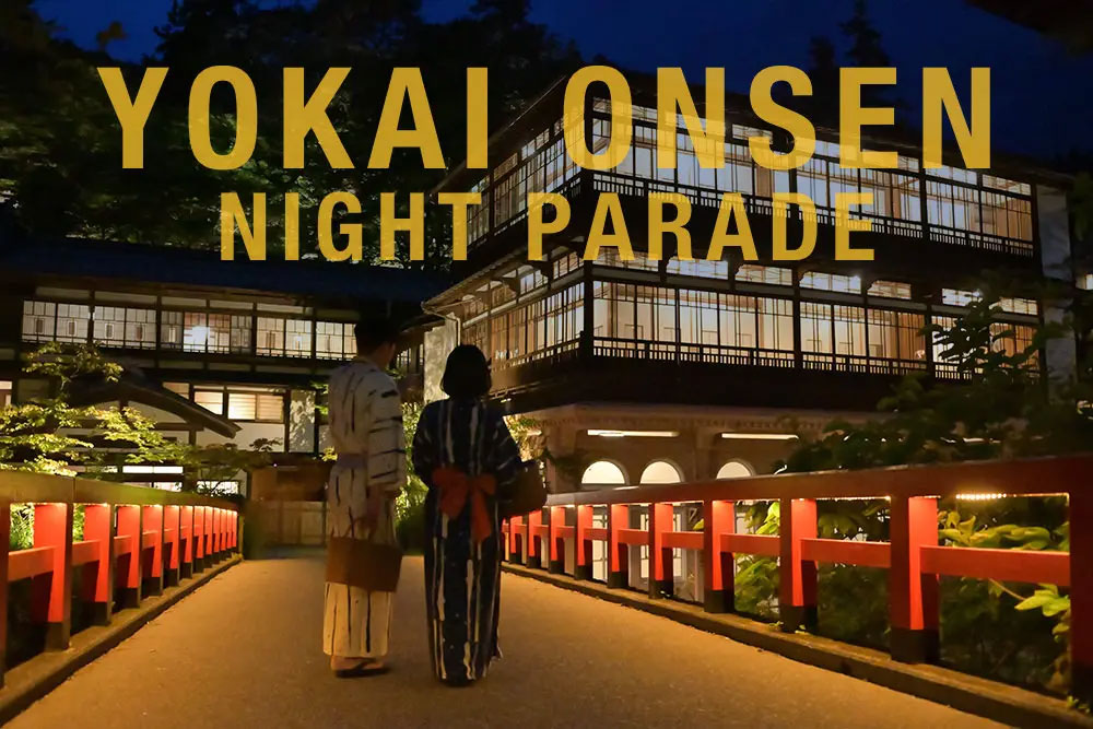 2025年1月12日より2月12日までの特定日。四万温泉では日本のカルチャーとして世界で人気の”YOKAI”をテーマに、演劇集団がパフォーマンスを繰り広げながら提灯を手に、ジブリアニメのモデルとなった旅館「積善館」やノスタルジックな夜の温泉街を散策するナイトウォークを開催。フィナーレでは温泉の湯による「茶会」で伝統の日本茶も味わっていただきます。