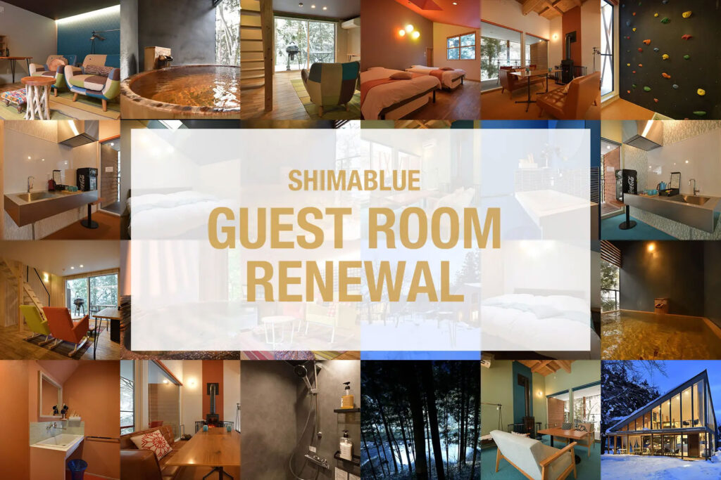 シマブルーのメゾネットタイプ客室のうち「サファリブラック・ハニーナチュラル・アイランドブルー・アップルオレンジ・リトルガーデン」の5室がリニューアルいたしました。