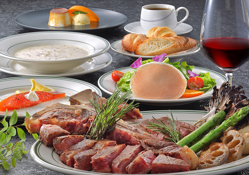 ご夕食は姉妹館「叶」のレストラン「J's CANYON」にてステーキコースをご賞味!コースの主役は上州牛Lボーンステーキ。上州牛は引き締まった赤身ときめ細やかなサシが人気のご当地ブランド牛です。尚、レストランまで送迎いたします。