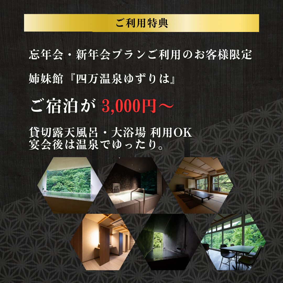 姉妹館 『四万温泉ゆずりは』のご宿泊が 3,000円〜 ご利用いただけます。