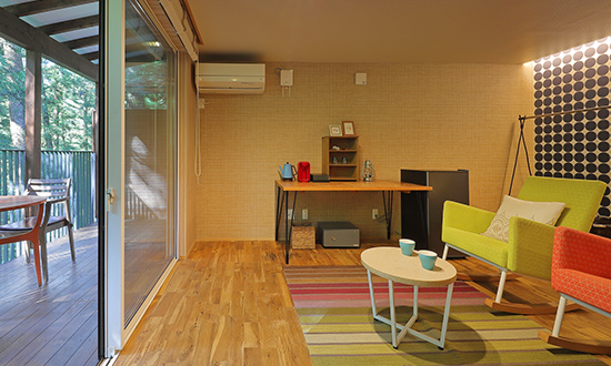 | 客室設備 | 冷蔵庫/冷暖房/Bluetoothスピーカー/電気ケトル/紅茶/コーヒー/お茶/空気清浄機 |